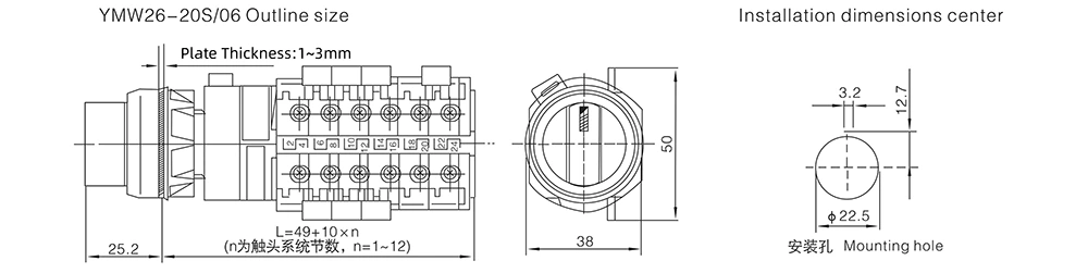 ・優れた構造設計:取付穴径22mmの合理的な構造を採用しており、コンパクトで余分な機器スペースを占有せず、さまざまなパネルレイアウトに柔軟に設置できます。