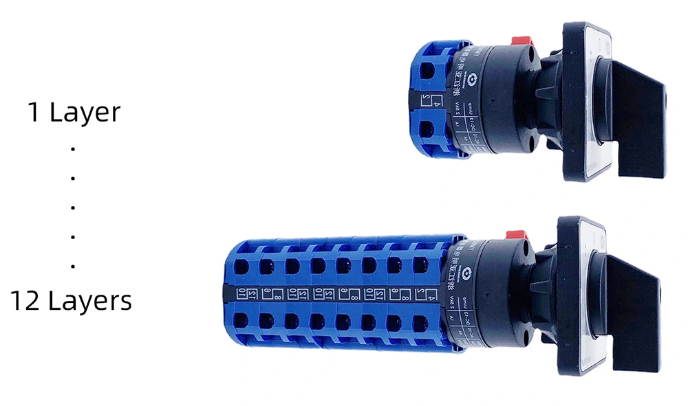- システム コンポーネント: 柔軟な層オプション – 位置決めスイッチ用の 1 ~ 12 層、自己リセット スイッチ用の 1 ~ 3 層、およびモーター制御スイッチ用の 1 ~ 6 層。