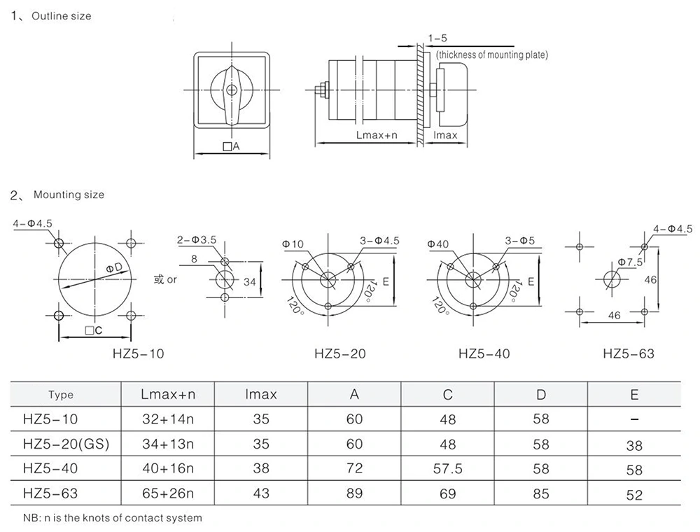 YAMING 63A コンビネーション ロータリー カム スイッチ (HZ5 シリーズ) のコア パラメータは厳格なテストを受けており、以下に詳述するようにさまざまなシナリオに適しています。