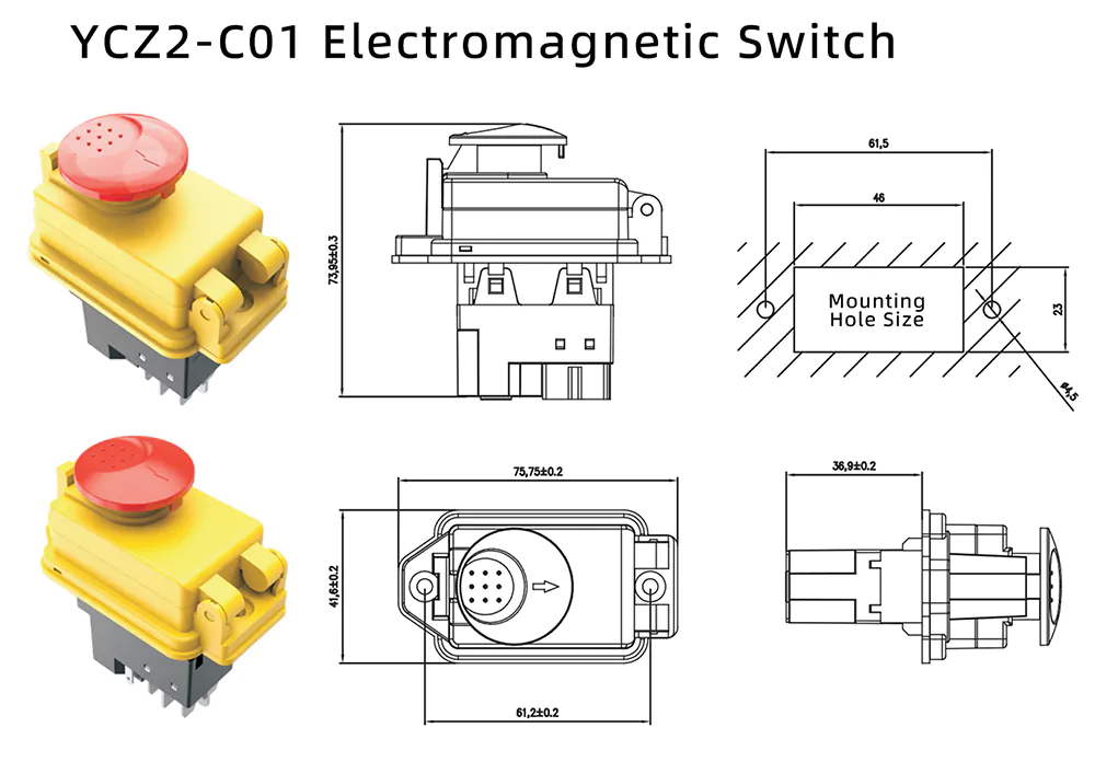 産業用制御環境向けに設計された当社の 8A 小型緊急停止カバー押しボタン電磁スイッチ (モデル: YCZ2-C01) には、予期せぬ機器の損傷を効果的に防止する統合停電保護および不足電圧保護が装備されています。