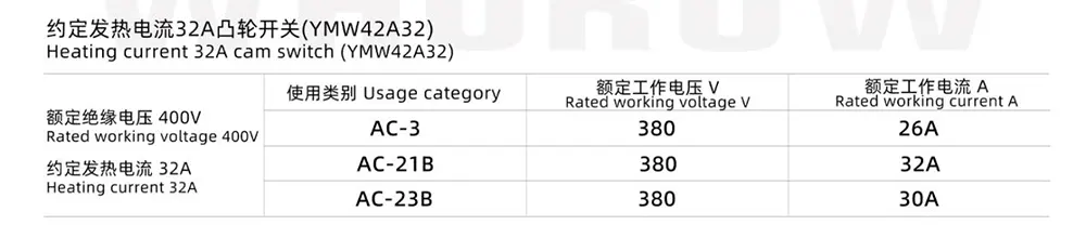 - 32Aカムスイッチ:20Aモデルと同じ30°、45°、60°、90°の位置決め角度を採用し、最大12の動作ポジションと1〜12のスイッチ層を備えています。より強力な耐電流能力を備えており、より高い電力要件が必要な場合に適しています。