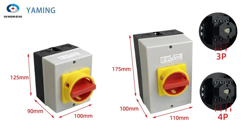 YMW42シリーズ防水ボックス付き切替ロータリーカムスイッチは、YAMINGが発売した高性能電気制御部品で、AC 50Hz、最大電圧690Vで動作するCNCプログラム制御工作機械や電気機器の電気制御回路に最適です。この製品は、制御、照明保護、信号およびプログラムの選択、電圧および電流測定の選択を含む複数の機能を統合しており、さらに小容量かご型非同期モーターの制御を実現できます。
