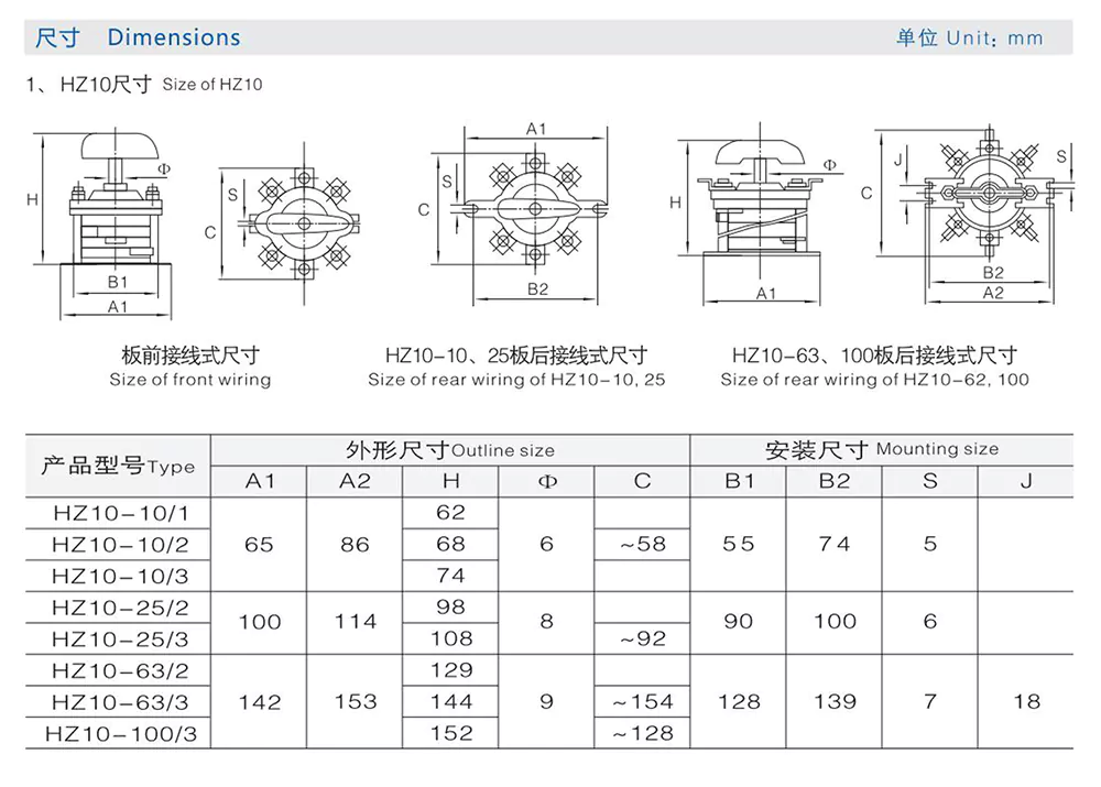 基板の後ろに取り付ける HZ10-6E91 10A コンビネーション スイッチは、溶接電流を 100A 未満に正確に調整します。電気機器の主回路制御および補助回路変換に最適で、最大 380V の電圧の AC 50/60 Hz システムに適合します。