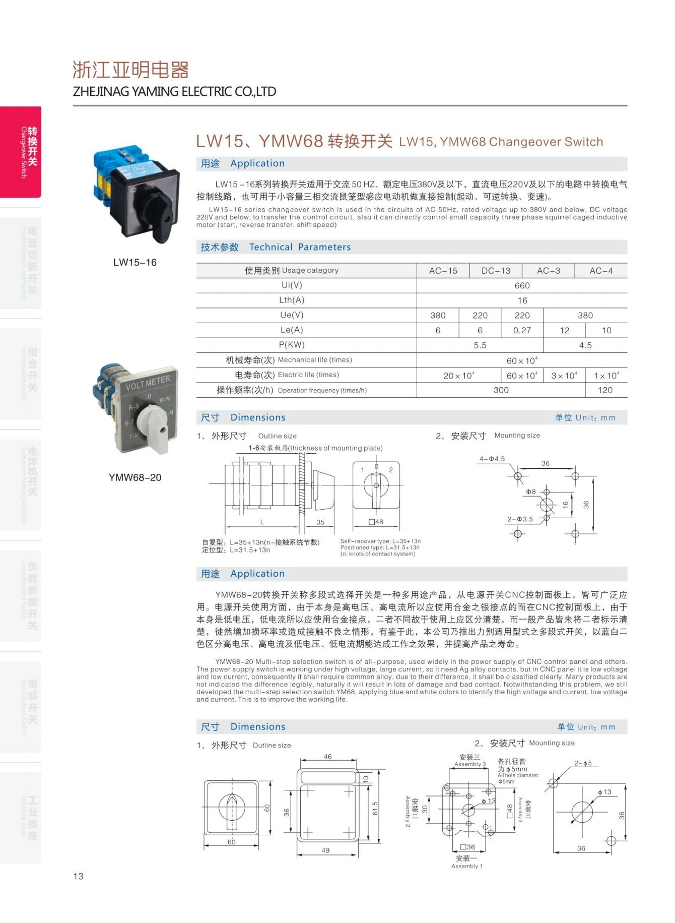 YMW68-20A 電圧計カム スイッチ (マルチポジション セレクター スイッチ) は、主に 2 つのシナリオに適合します。1 つは、高電圧および高電流の電源スイッチ アプリケーションです。銀合金接点は、高電圧および高電流環境での磨耗に効果的に耐え、安定した電力制御を保証します。 2 つ目は、低電圧および低電流の CNC コントロール パネル アプリケーションです。このアプリケーションでは、標準合金接点が機器の制御要件に正確に一致し、正確な信号伝送と制御コマンドの実行が保証されます。